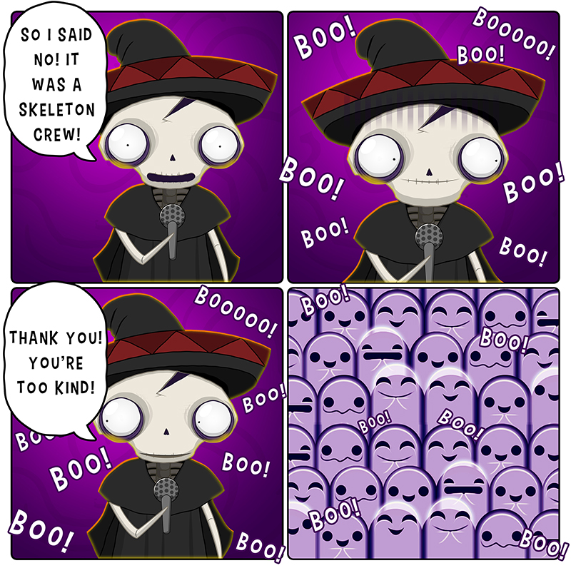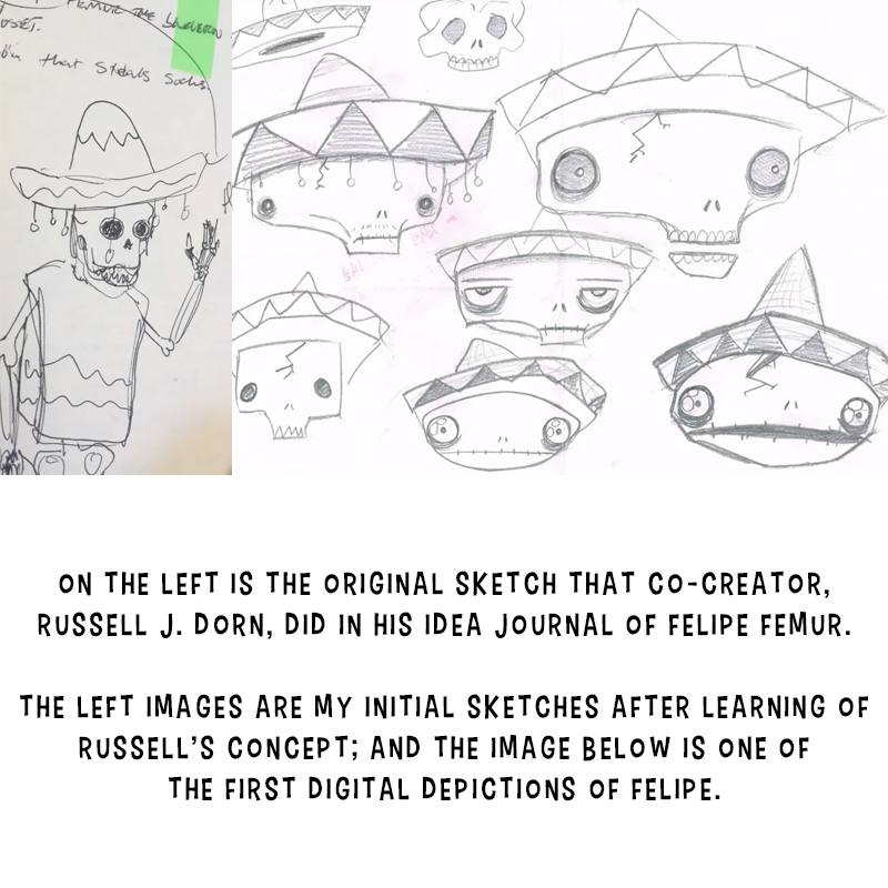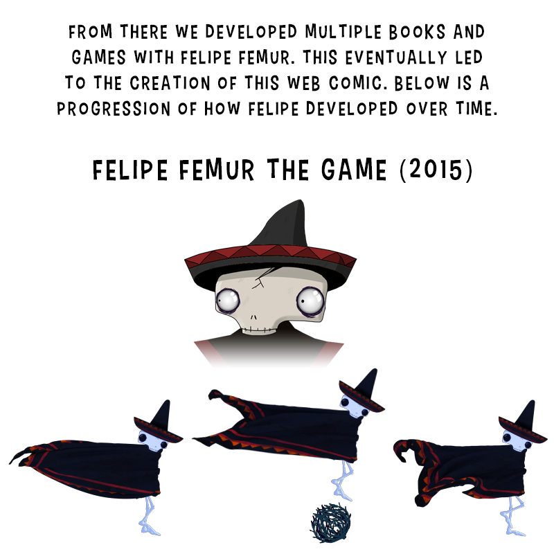 Follow the Halloween themed adventures of ironic monsters such as Felipe Femur the skeleton with a lot of heart, Gummy the toothless werewolf, Sunny the sun-loving vampire, and Runny the not-so-wicked witch in their town of Toonstone. More details about the characters can be found at felipefemur.com