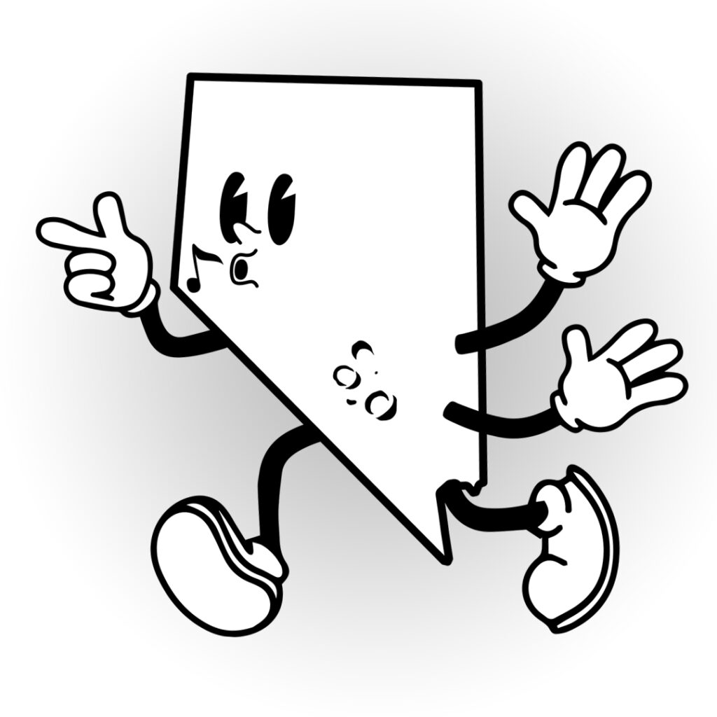 This one-of-a-kind logo is a creative interpretation of Nevada, designed to capture the bold personality and distinctive character of the state. Blending retro inspiration with playful, artistic elements, the design delivers a quirky vintage feel while celebrating Nevada’s rich culture, history, and unmistakable identity.